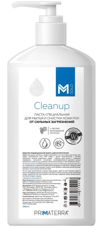 Паста специальная для мытья и очистки кожи рук от особо устойчивых загрязнений "М SOLO Cleanup" (флакон с помпой 1000 мл)