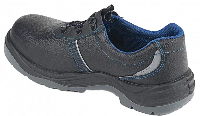 Кожаные полуботинки c фигурным мягким кантом и глухим клапаном предназначены для защиты ног от общих производственных загрязнений в отапливаемых помещениях и на открытом водухе в летний период. Сетчатая подкладка и съемная стелька создают комфортные условия носки в течении рабочей смены. Шнуровка, проходящая через металлические петли, обеспечивает комфортную адаптивную посадку при длительном ношении. Светоотражающие элементы повышают видимость работников в темное время суток, а также на неосвещенной территории. Подошва- двухслойная, маслобензостойкая, литьевого метода крепления. Промежуточный слой изготовлен из ПУ с внутренней амортизирующей вставкой в пяточной части подошвы, способной гасить нагрузки при ходьбе. Нижний ходовой слой- износостойкий ТПУ. Глубина протектора ходового слоя обеспечивает хорошую сцепляемость с поверхностями и препятствует скольжению. Металлический подносок обеспечивает защиту пальцев стопы от механических повреждений ударной прочностью до 200Дж.