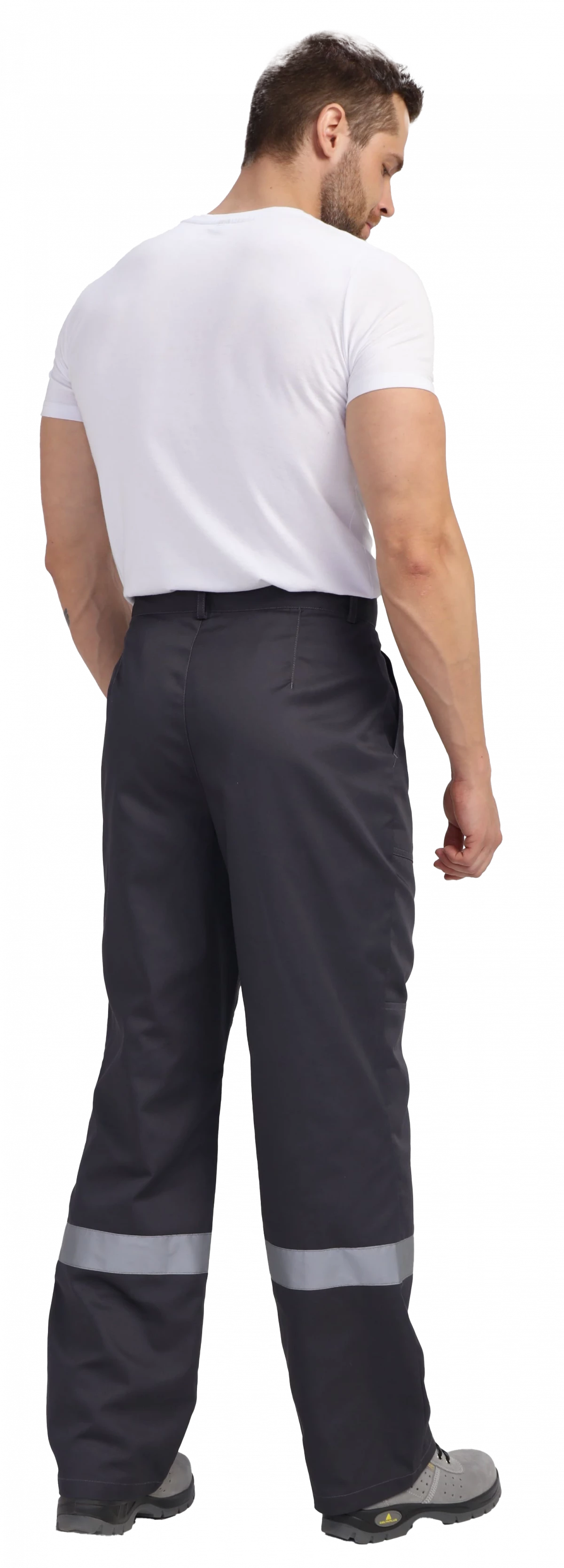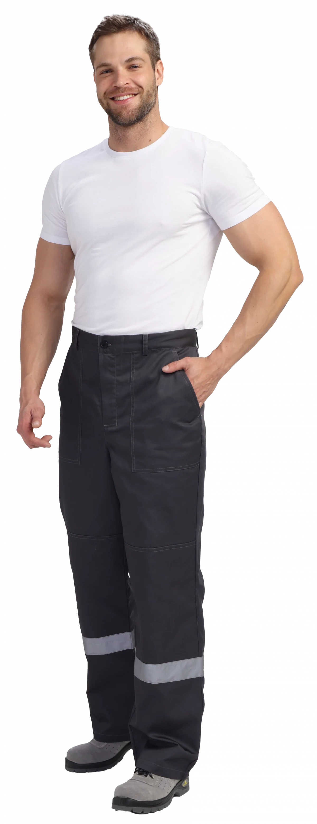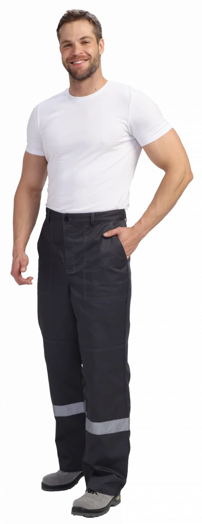 Брюки прямого силуэта, с гульфиком на молнии. Два боковых кармана, усиленные наколенники. СОП по низу брючин 50мм