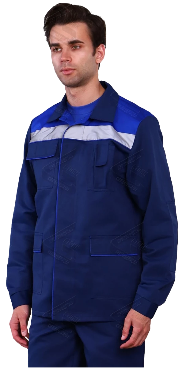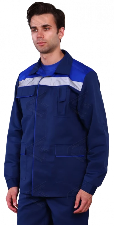 Рукава с усилением на уровне локтя, с манжетами, застегивающимися на пуговицы. В области подмышечных впадин вентиляционные отверстия. По шву притачивания кокетки СОП 50 мм.