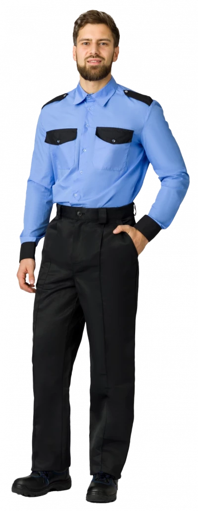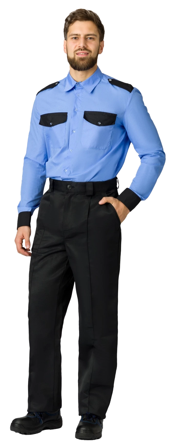 Рубашка охранника с длинным рукавом мужская, ярко-голубой