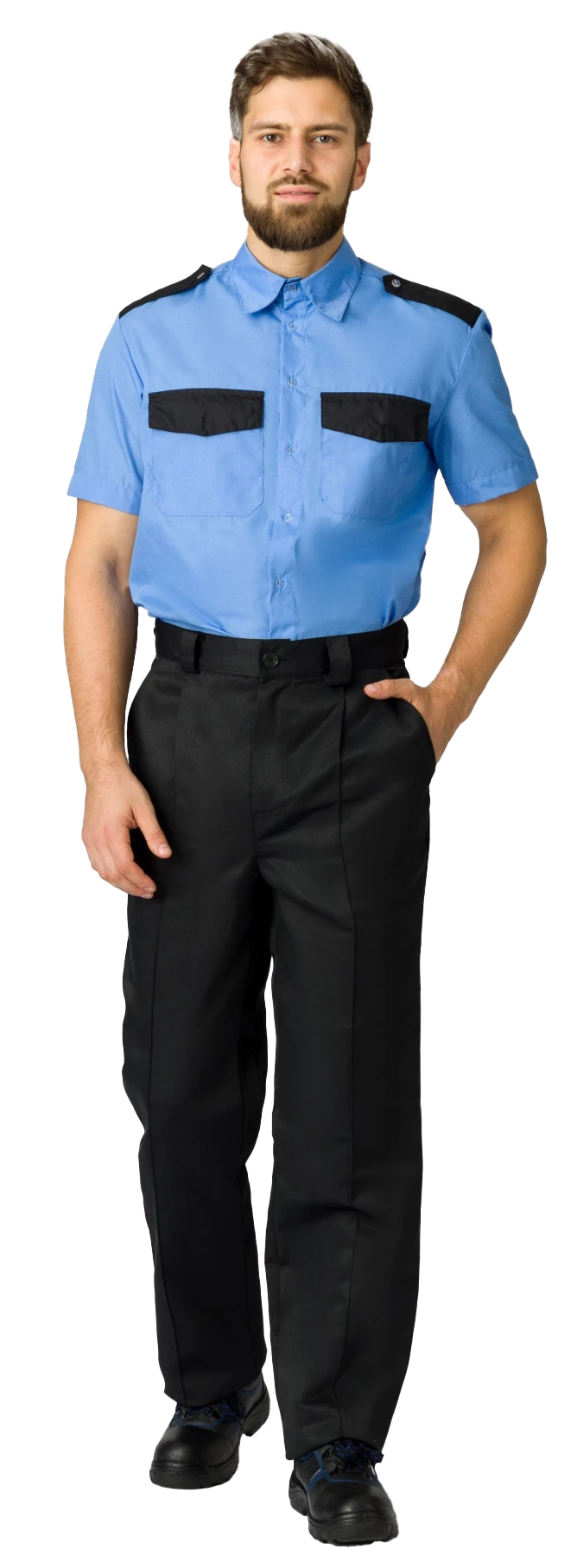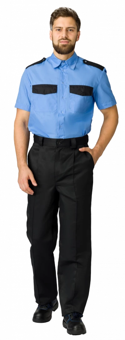 Рубашка охранника с коротким рукавом мужская, ярко-голубой