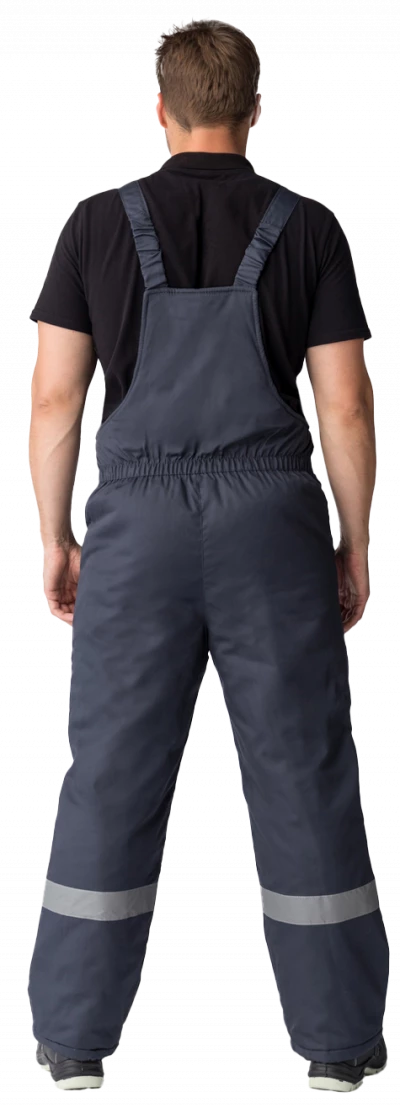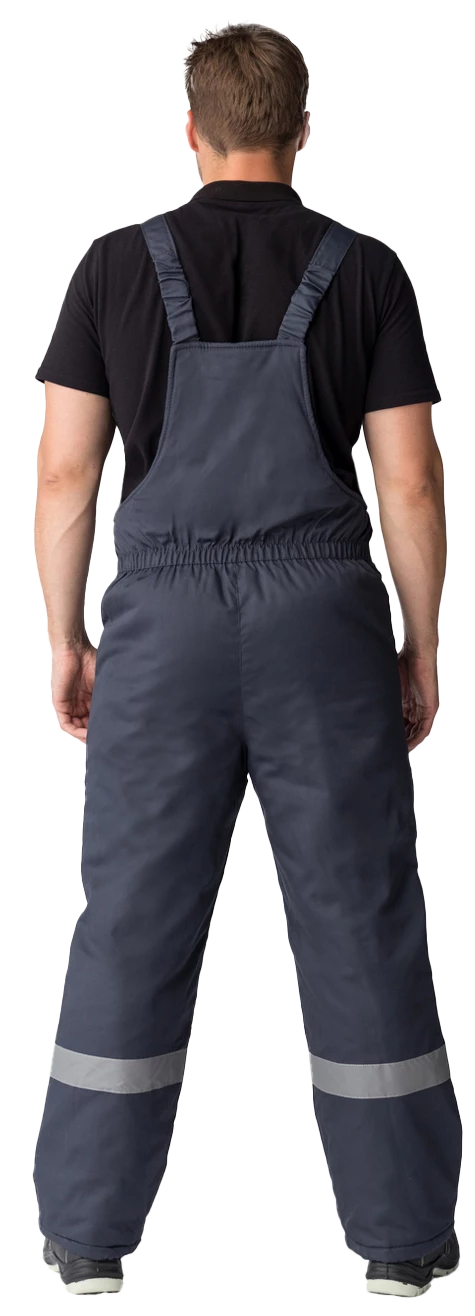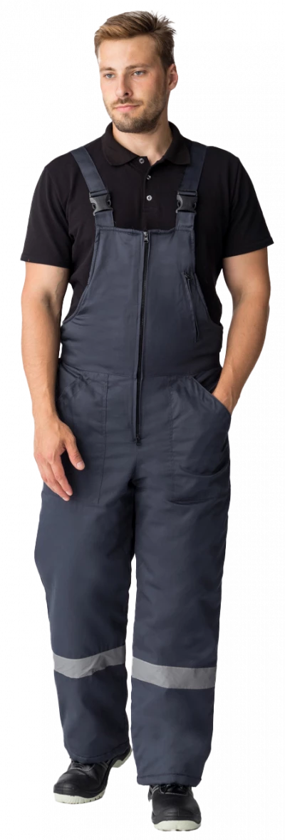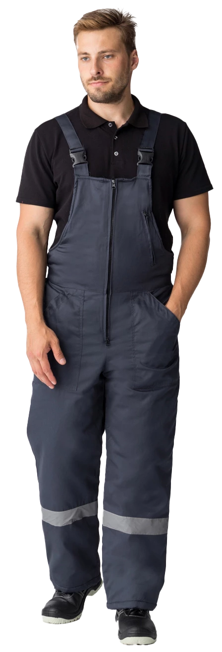 Полукомбинезон прямого силуэта на регулируемых по длине бретелях, центральная застежка на молнию, прорезной карманы на грудке. Эластичная тесьма по линии талии для лучшего прилегания