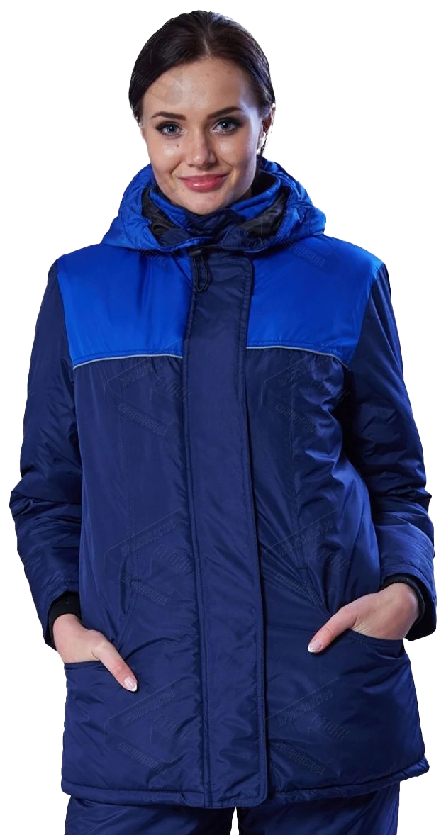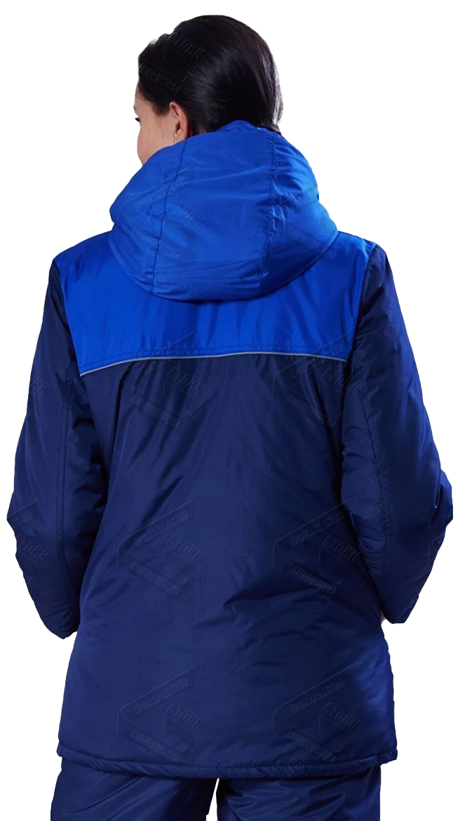 Куртка утепленная с центральной застежкой на тесьму «молния» и внешним ветрозащитным клапаном, застегивающимся на липучку. Воротник стойка с флисом. Полочки с боковыми нижними карманами в рельефных швах сложной конфигурации. Внутренний карман. Рукава с трикотажными манжетами. Внизу куртки кулиса. СВ кант расположен в швах притачивания кокеток.