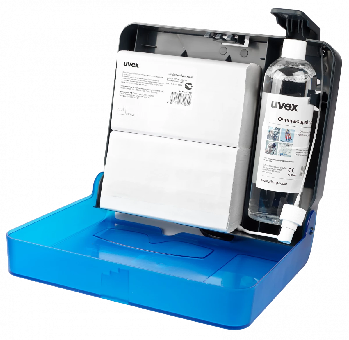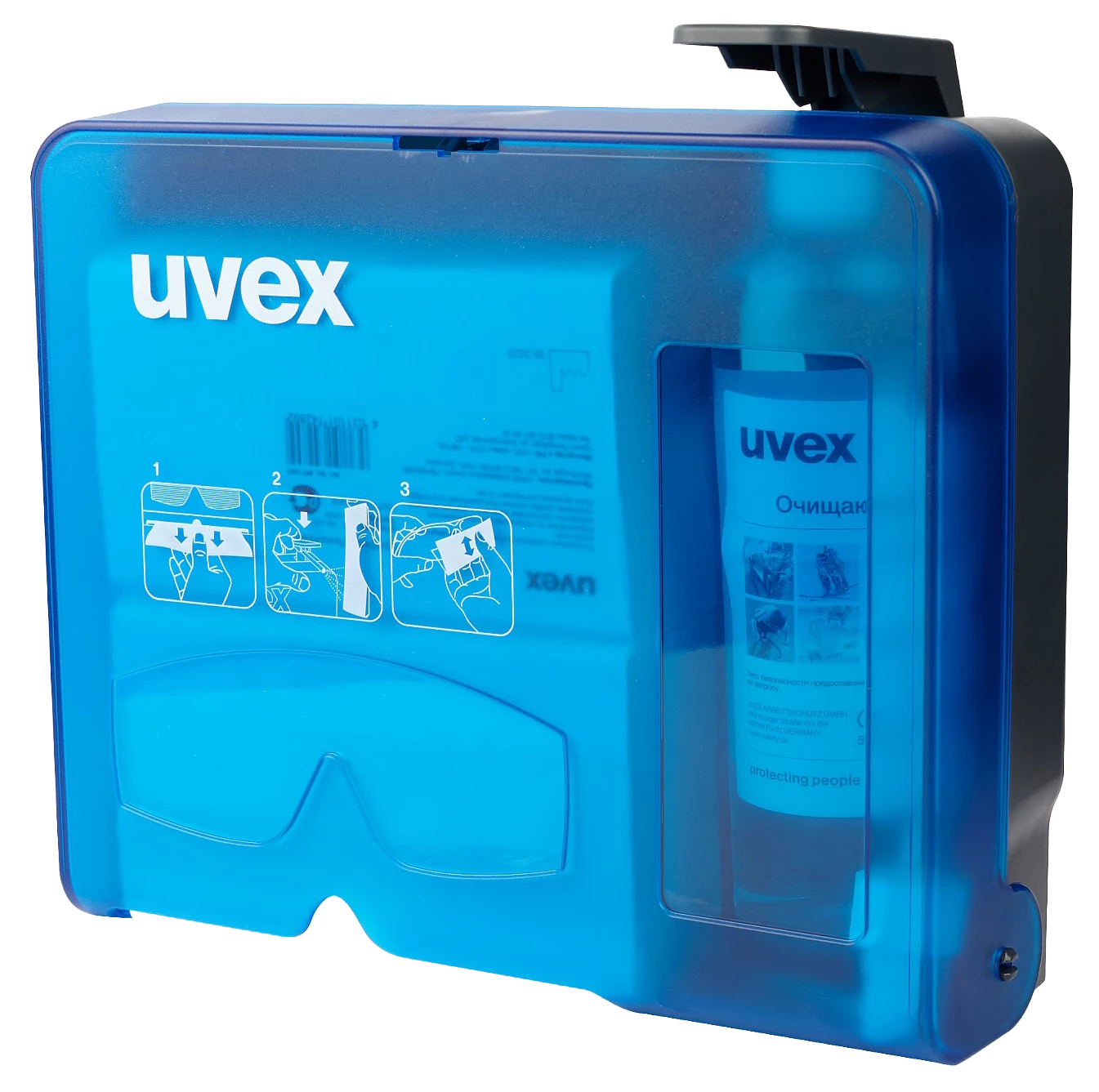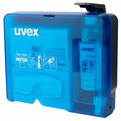 Станция для ухода за очками uvex обеспечит простой уход за очками с помощью специального раствора и салфеток. Нанесите раствор на поверхность линзы или на специальную салфетку и протрите очки. Вы получите отличный результат без особых усилий и при этом не повредите линзу.
