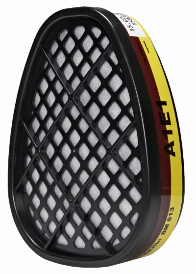 Противогазовый фильтр ВМ 613 А1Е1 в составе с панорамной маской ВМ 680 и полумасками серий ВМ 6000 и ВМ 7500 защищает от органических газов и паров, а также от кислых газов. Класс защиты 1.