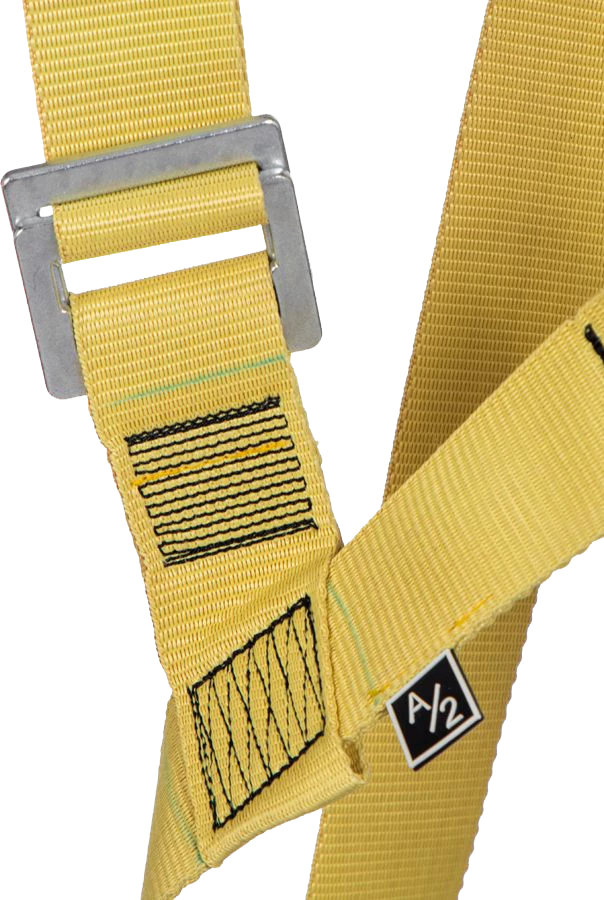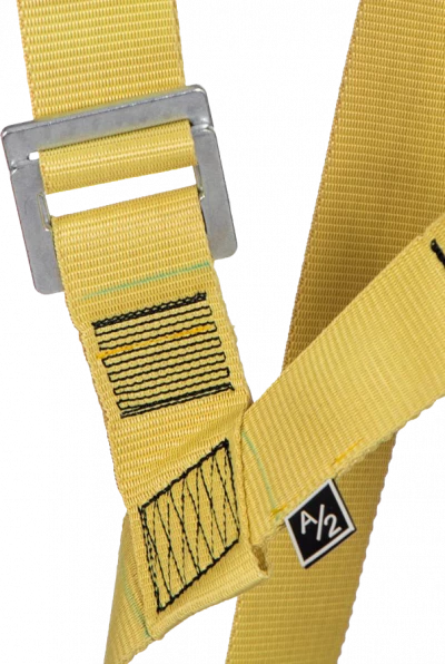 Базовая страховочная привязь из огнеупорных материалов со стальными быстроразъемными пряжками. Используется для предотвращения или безопасной остановки падения при работе в опорном пространстве в составе систем удержания и позиционирования при выполнении электрогазосварочных и других работ с возможным кратковременным термическим воздействием.