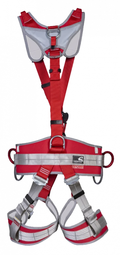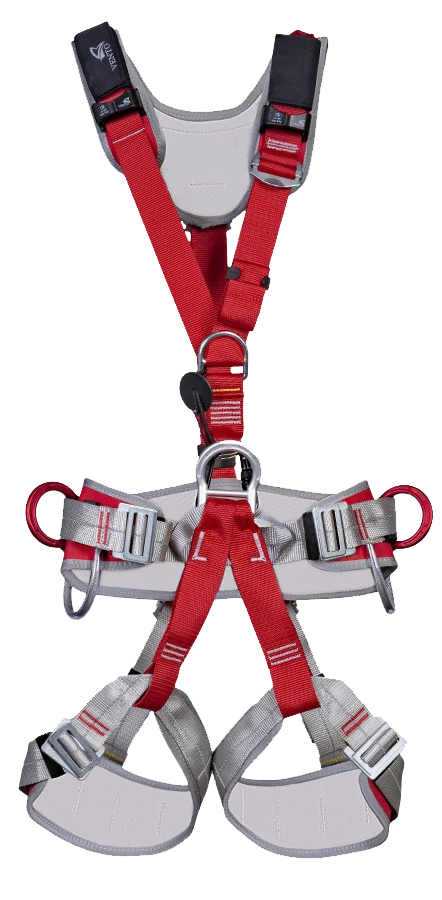 Имеются 2 страховочные точки: на спине и на груди, а также 4 точки для удержания и позиционирования: две боковые, одна сзади на поясе и одна брюшная. Последняя удобна для использования в системах канатного доступа