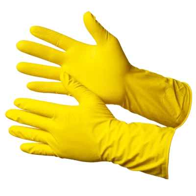 Хозяйственные перчатки из натурального латекса с внутренним флокированием (напыление хлопка) для комфортной эксплуатации и поглощения пота.