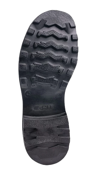 Подошва из нитрильной резиновой смеси, устойчива к воздействию агрессивных сред - растворов кислот, щелочей с концентрацией до 20%, воздействию масла, нефти и нефтепродуктов, от повышенных температур (кратковременному контакту (60 секунд) с поверхностями, нагретыми до температуры +300°С. Специальное рифление на подошве препятствует скольжению.