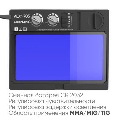 Светофильтр оснащен светодиодным индикатором, который своевременно уведомит о необходимости замены батареи, предотвращая риск повреждения глаз.